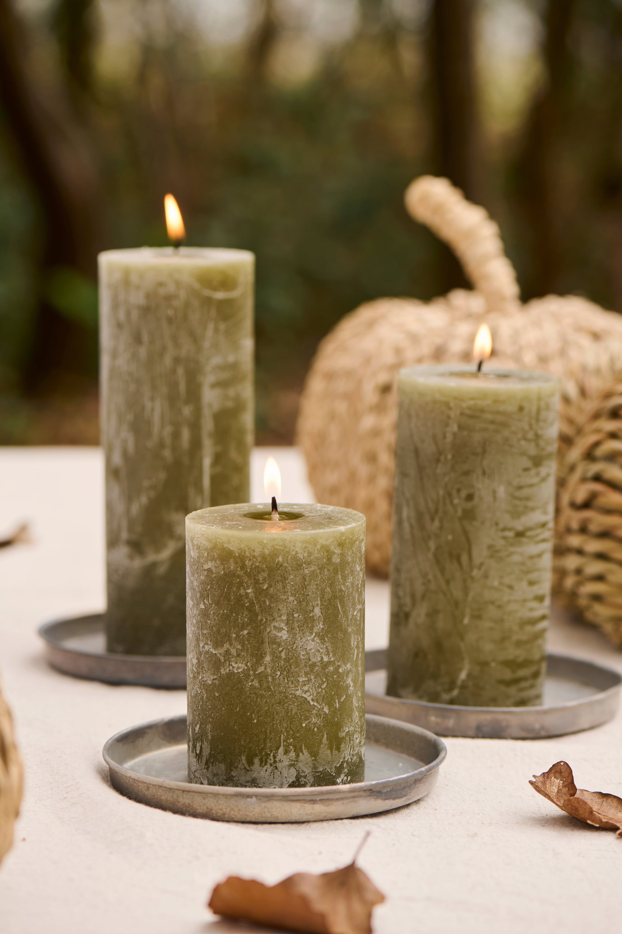 Ib Laursen Rustikale Kerze Höhe 14 cm, Olivgrün