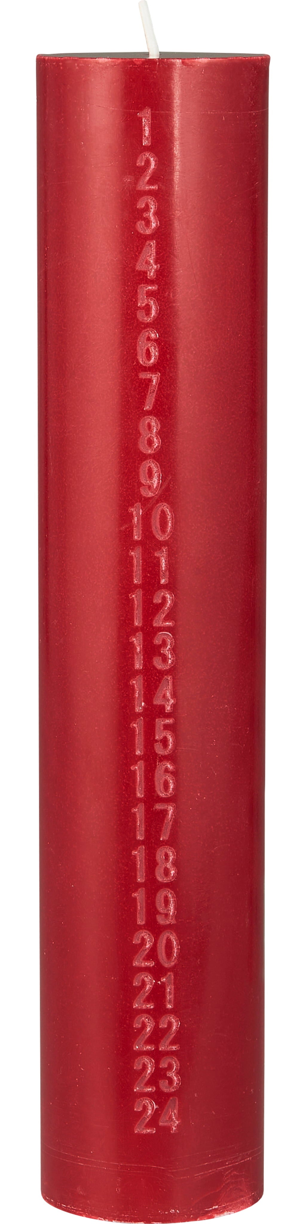 Diese Kerze in festlichem Rot ist eine stilvolle Alternative zum klassischen Adventkalender und eine tolle Möglichkeit, die Zeit bis zum Weihnachtsfest stimmungsvoll zu gestalten.