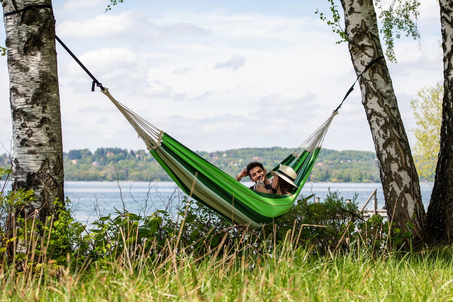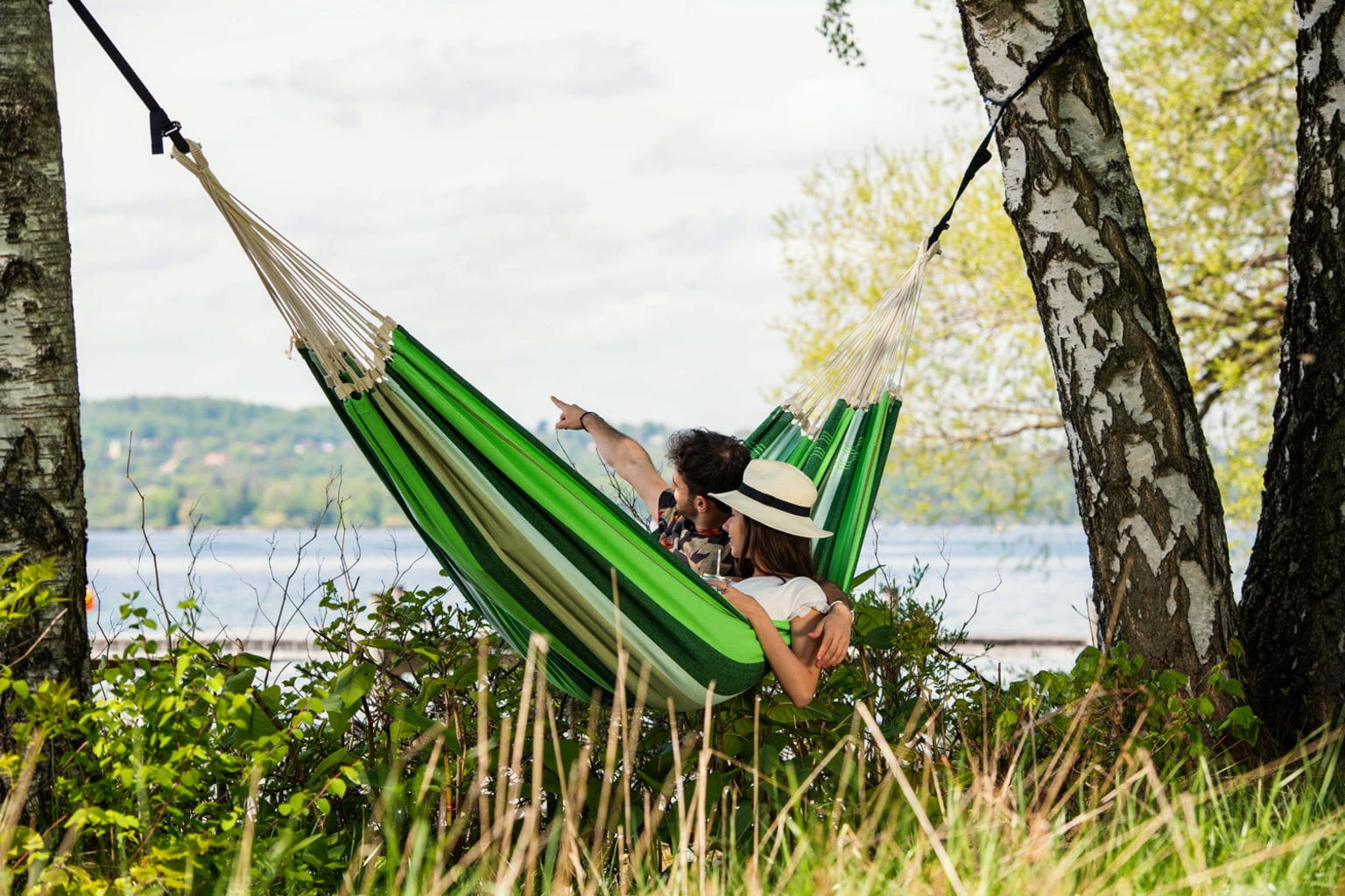 Hardware for hanging up the hammock are not included in the delivery and must be purchased separately. You can find them in the Accessories section further down on this page.