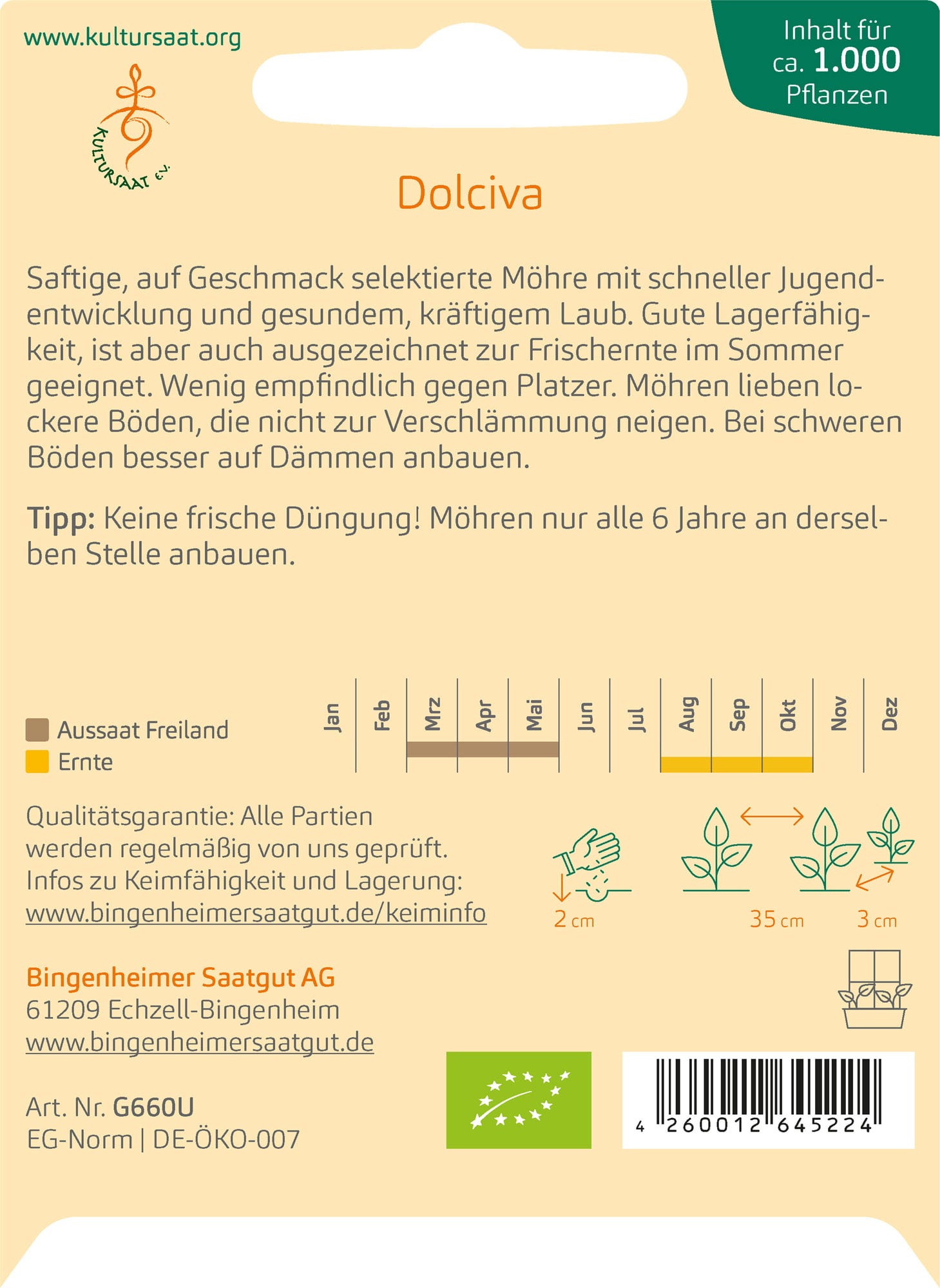 Bingenheimer Saatgut Carrot "Dolciva"