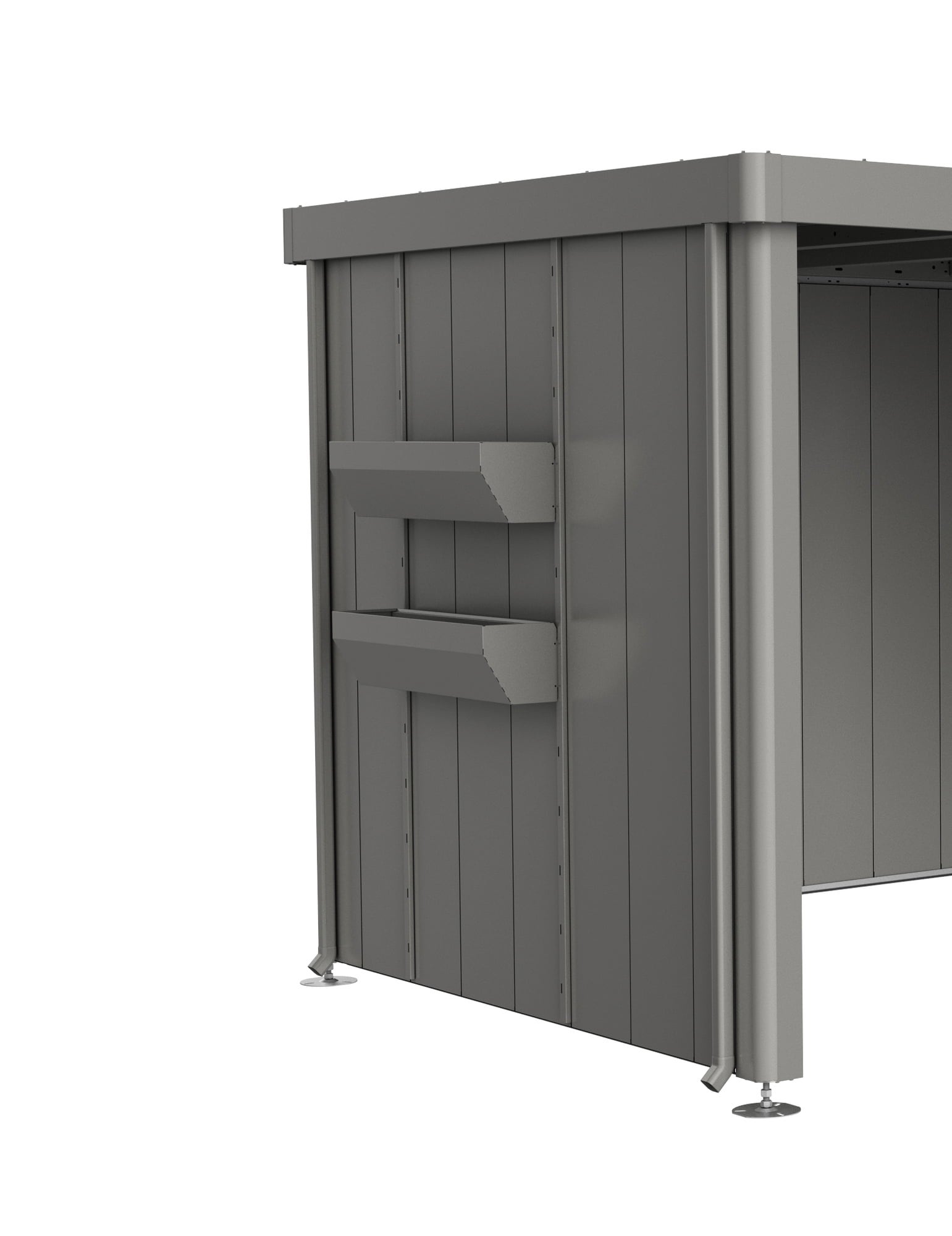 Biohort FloraBoard zu Seitendach Gerätehaus Neo, quarzgrau-metallic