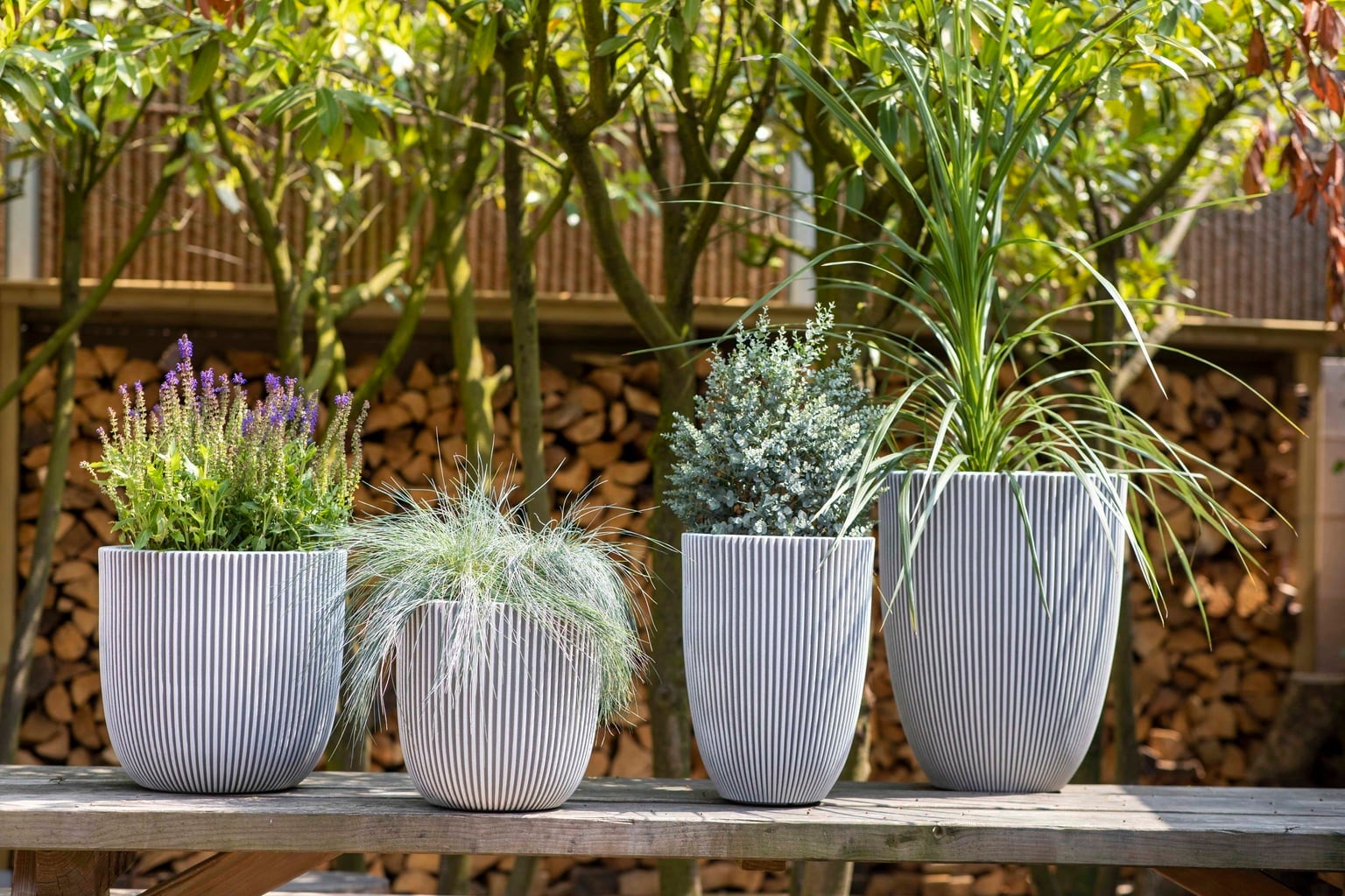 Dieser Blumentopf aus der Groove-Kollektion vereint Funktionalität, Stil und Umweltbewusstsein. Hergestellt aus recycelten Materialien, ist er nicht nur eine nachhaltige Wahl, sondern auch ein echtes Multitalent für drinnen und draußen.