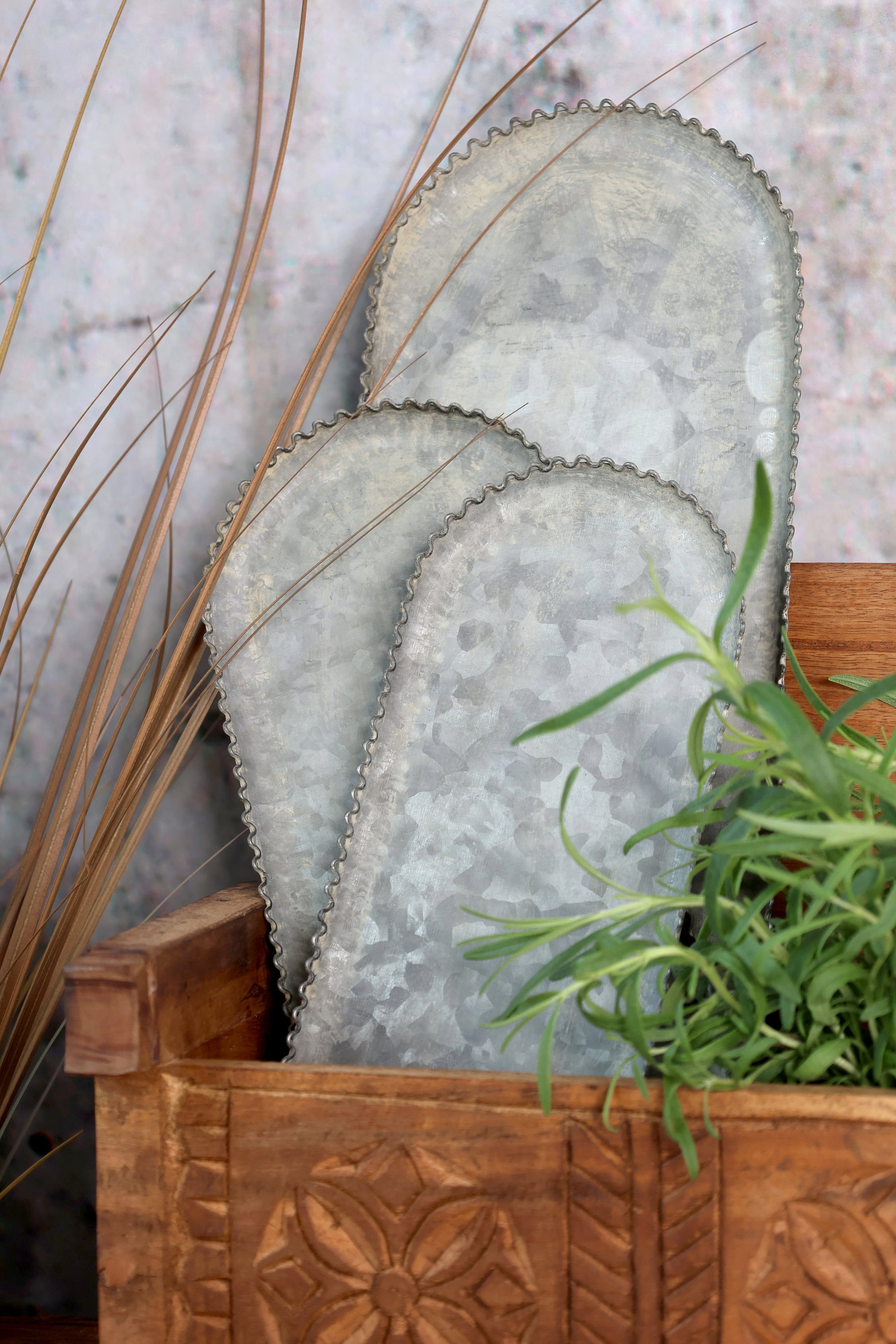 This sophisticated tray set with delicate lace edging adds a refined touch of vintage charm to your home. Perfectly suited for presenting snacks, candles, or decorative accents with style in any room.