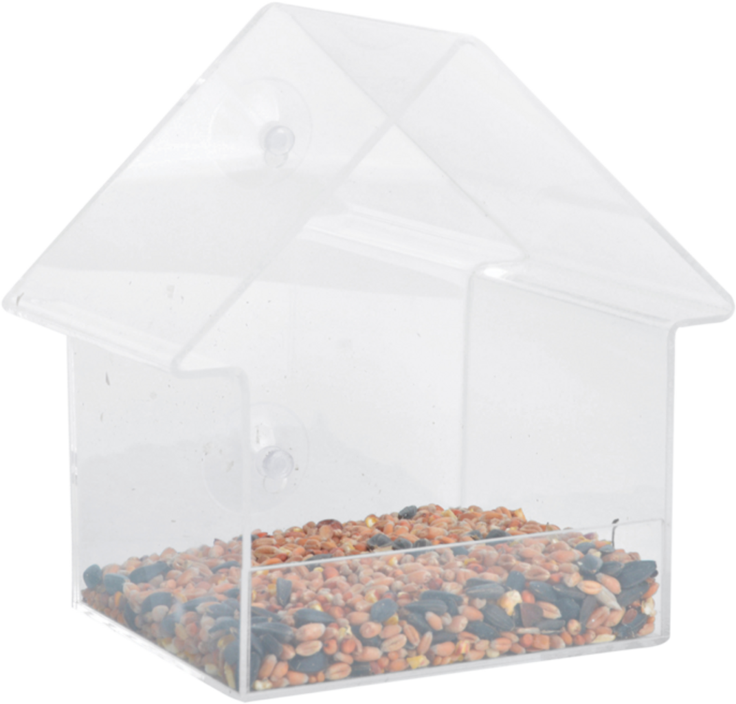 Mit diesem modernen Fensterfutterhaus kannst du die Vögel beim Fressen direkt von innen beobachten. Durch die transparenten Wände und das durchsichtiges Dach siehst du alles, was sich im Inneren abspielt. Einfach mit den Saugnäpfen an der Fensterscheibe befestigen oder alternativ an einer Wand aufhängen.