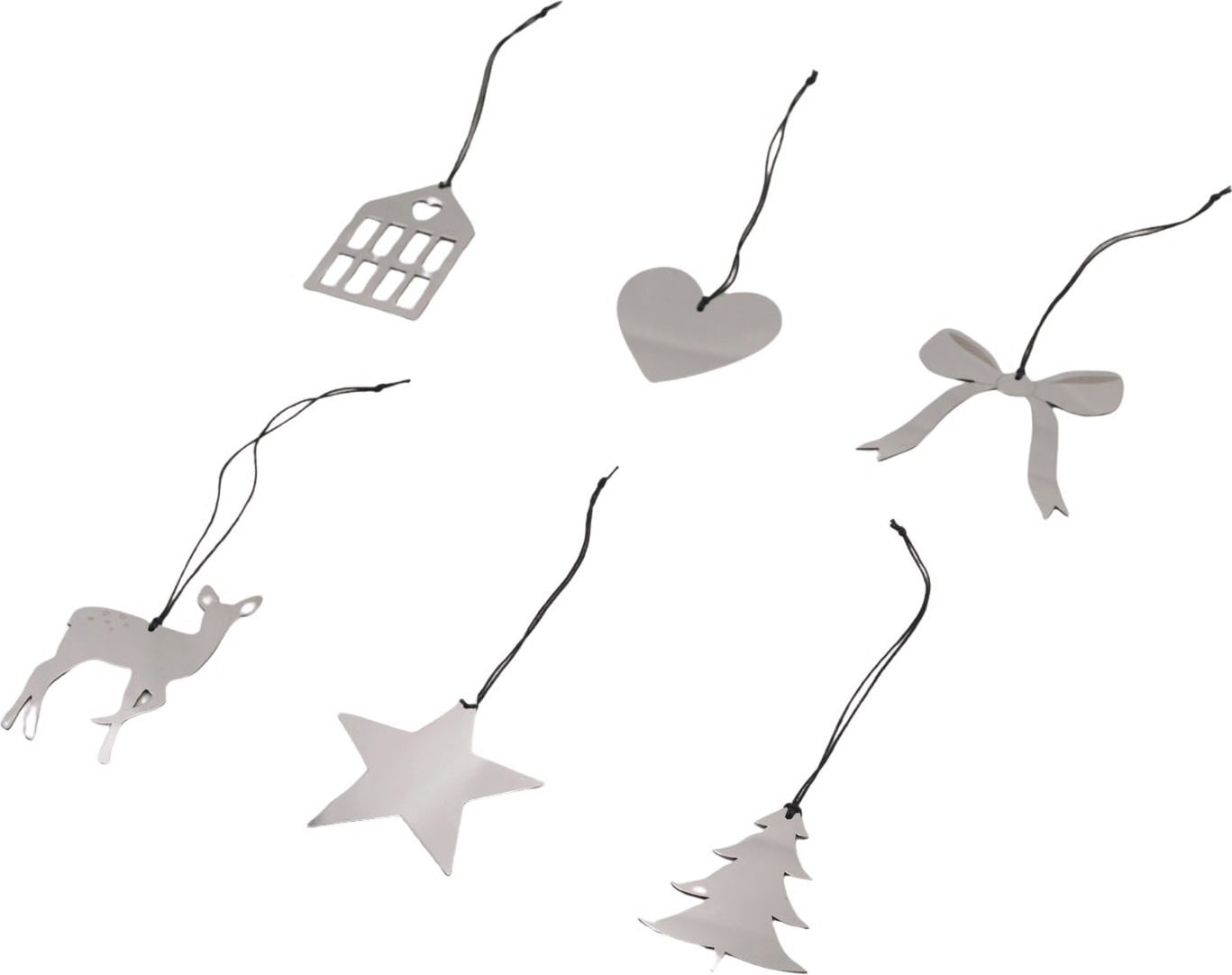 Eulenschnitt Christmas Tree Decorations, mixed 6 piece set, Silver