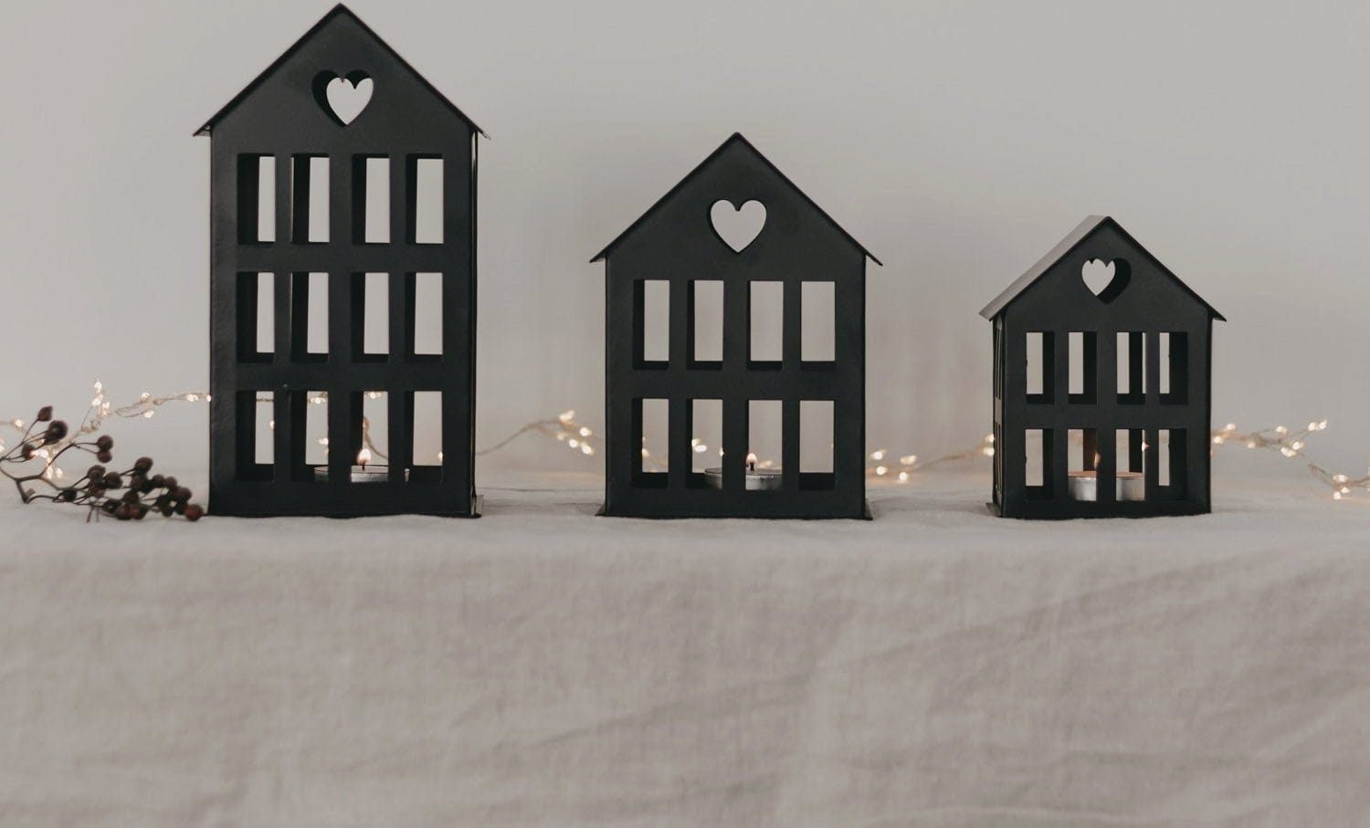 This charming little house features a simple design and timeless elegance. Crafted from metal, it invites you to personalise it with a tea light, candle, or fairy lights. It serves as an enchanting focal point that seamlessly complements any living space, making it perfect for use throughout the year, not just during Christmas.