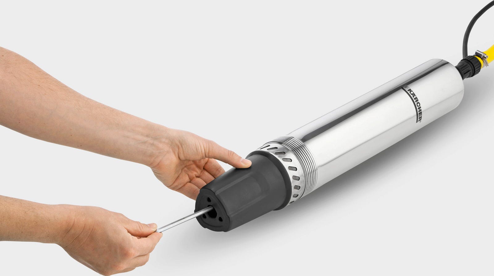 As a deep well pump for garden irrigation, this model is ideal for supplying lawns, flower beds, or automatic sprinkler systems. Furthermore, it can be used as a borehole pump for domestic water supply, allowing you to extract groundwater for use as service water in the home—for example, for toilet flushing or washing machines. The robust stainless steel housing protects the pump during continuous underwater operation. An integrated pre-filter and a check valve ensure reliable performance when pumping well water, while the spacer foot protects the water intake from debris and silt.