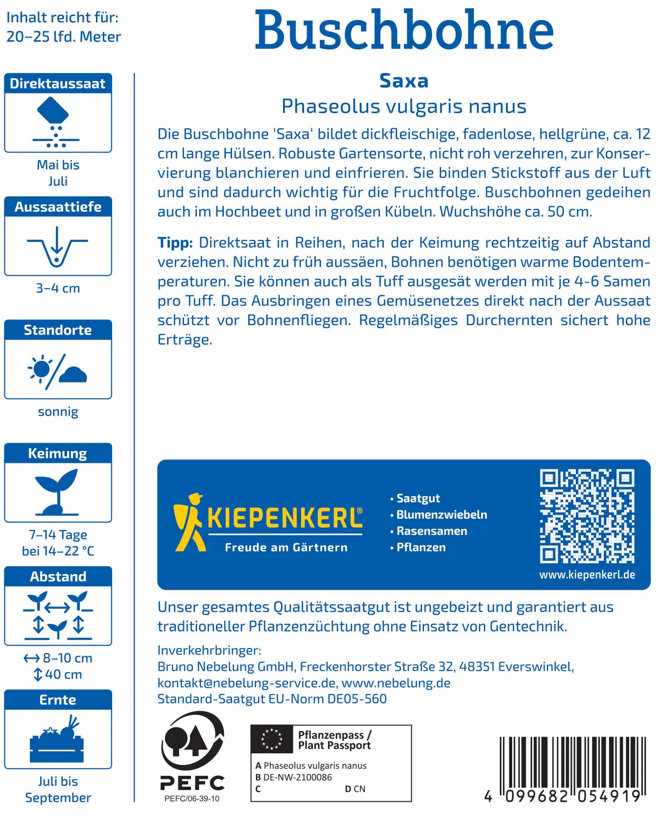 Kiepenkerl Bush Bean Saxa, Value Pack