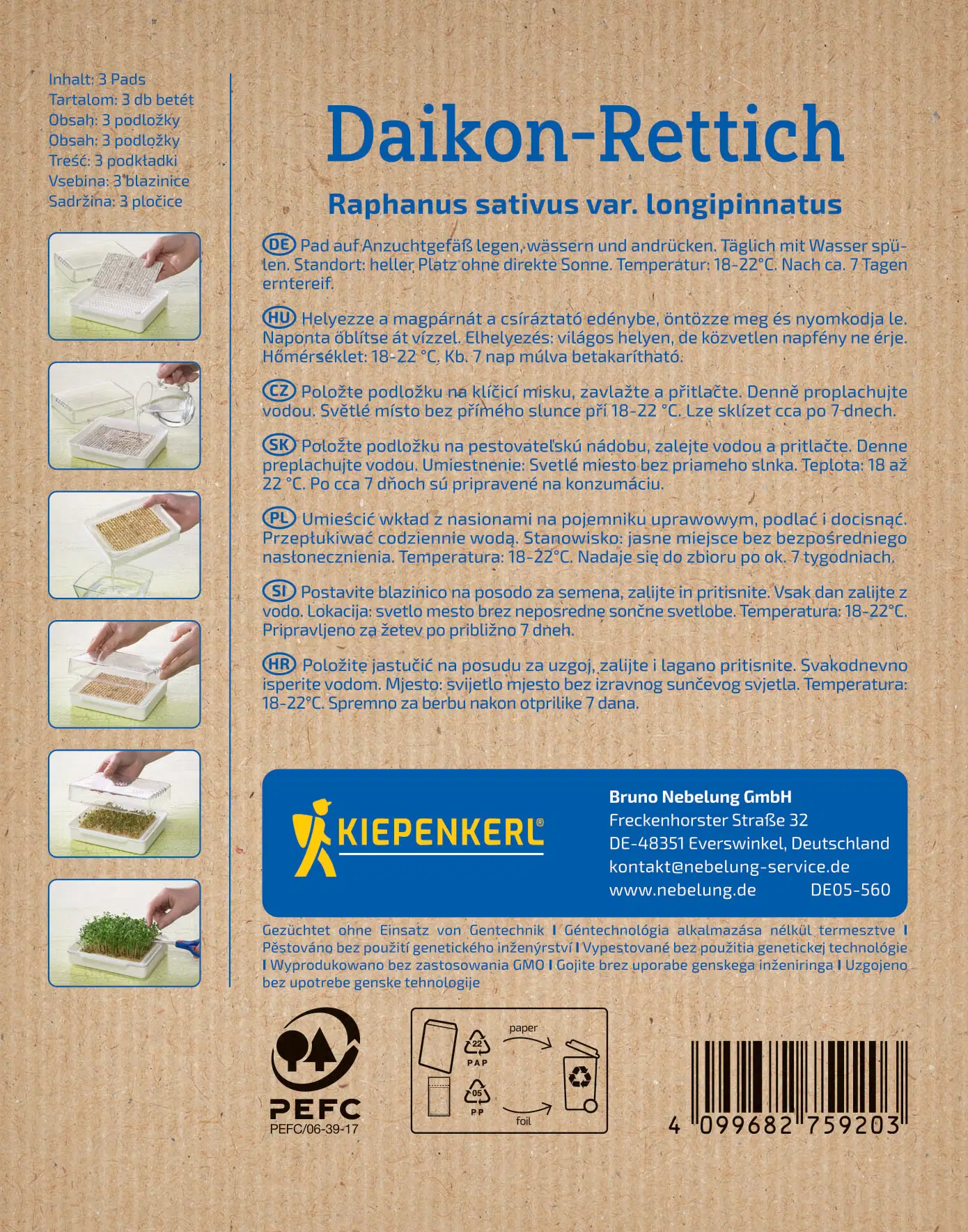 Kiepenkerl Organic Microgreen Garden Pads Daikon Radish