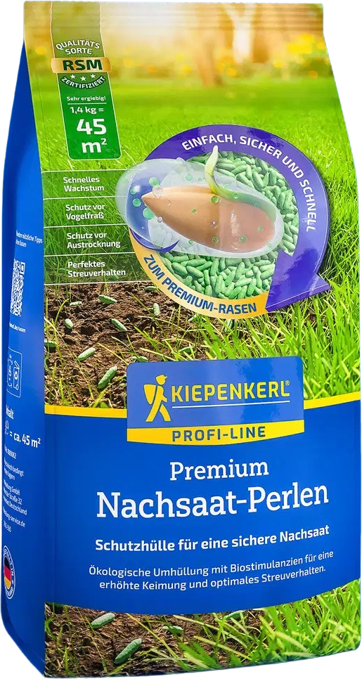 The Premium Reseeding Pellets make tired, patchy lawns look fresh, full and green again in no time. Thanks to the natural DynaSeed® technology, the seeds have a nutrient-rich coating that stores water better, accelerates germination, and strengthens young grasses. The higher weight ensures easier spreading, while natural green pigments reduce seed loss to birds. Ideal for closing bare patches and maintaining a dense, strong lawn – even under touch conditions.