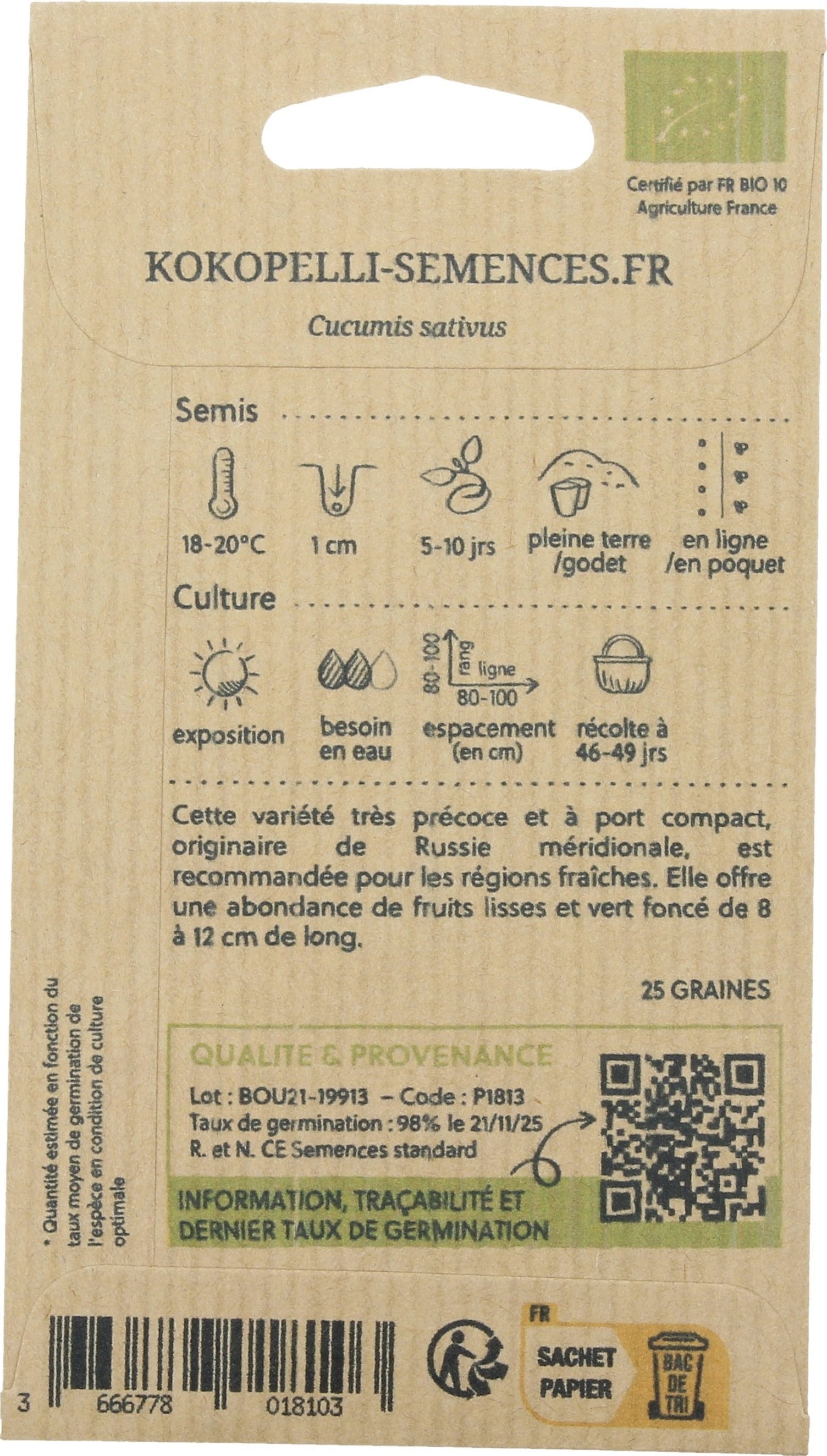 Kokopelli Organic Bush Cucumber "Bushy", 25 Seeds