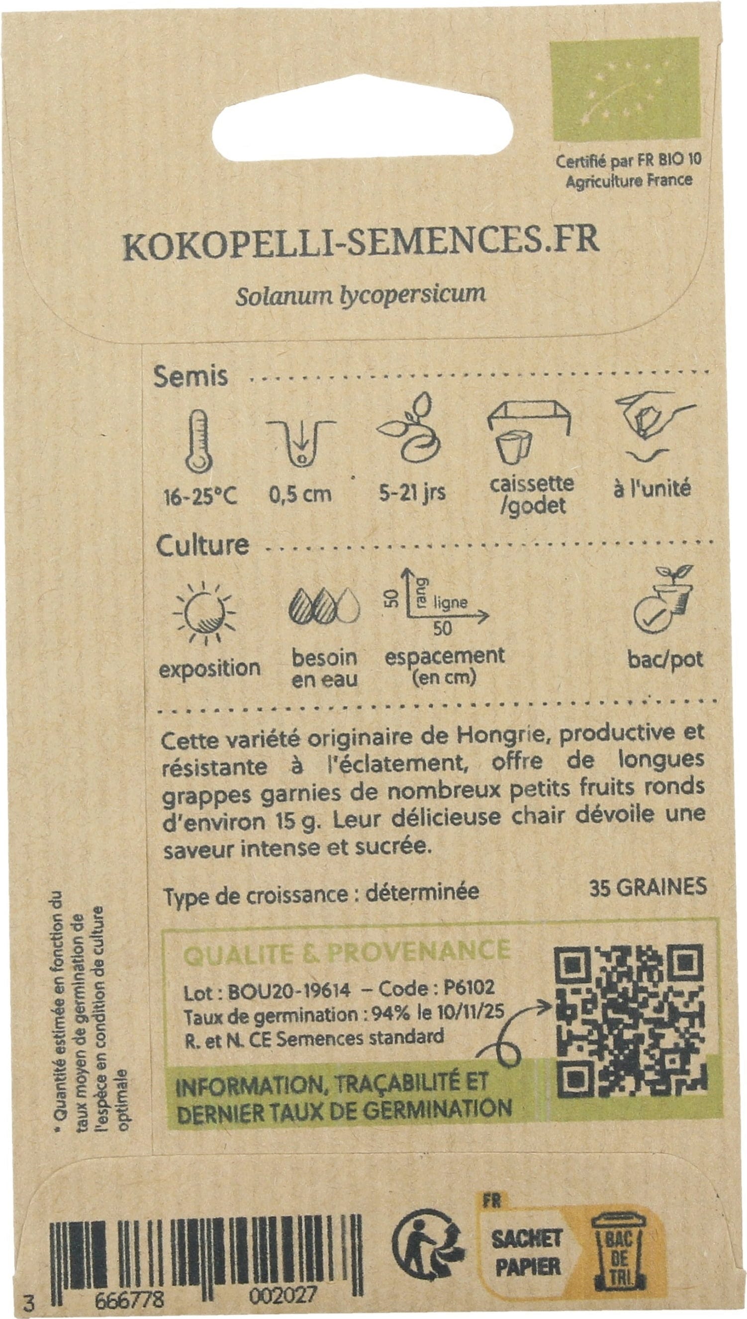 | Manufacturer: | Association Kokopelli, 7 Route de Sabarat, Foret de Castagnes, 09290, Le Mas D'Azil, France, professionnels@kokopelli-semences.fr, www.kokopelli-semences.fr |