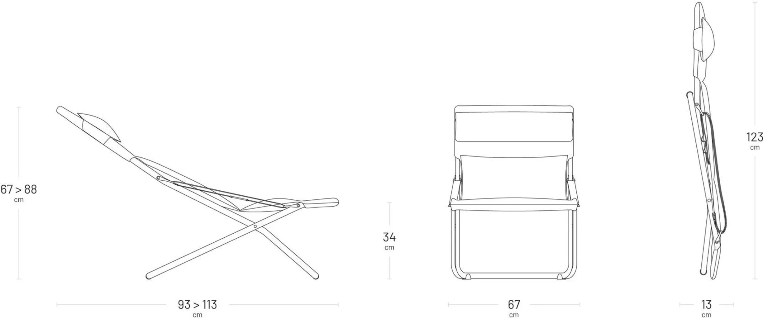 Unsurpassed comfort for the highest demands. The incomparably soft "Transabed" with its compact folded size not only impresses with its large lying surface but also with its carefully considered design. It does not have any cross struts in that front area thus ensuring maximum comfort and relaxation. You can switch easily between the three different positions - including a lying position - using a carabiner system integrated into the armrests.