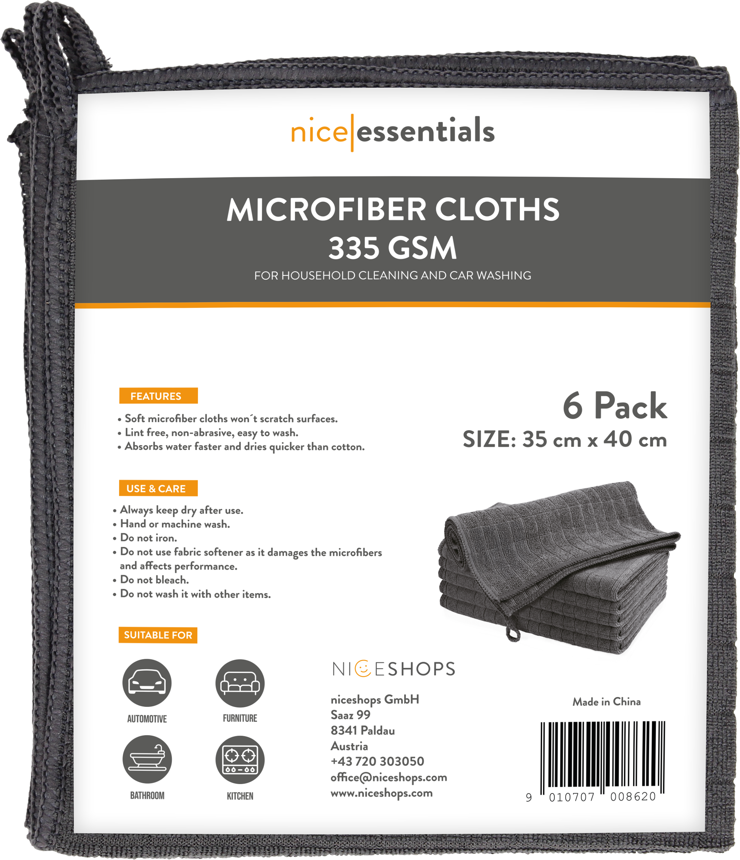 nice essentials Mikrofaser Reinigungstücher 35 x 40 cm Set, 6 Stück