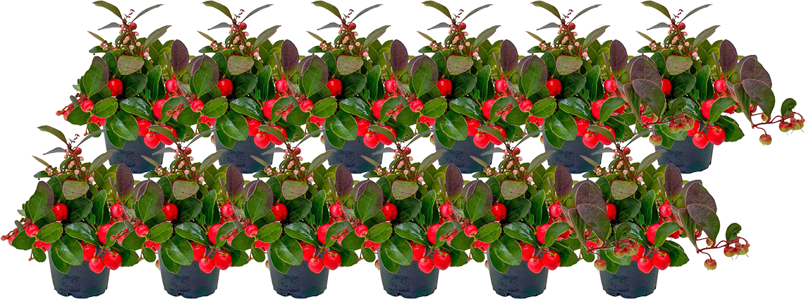 The "Mini" Eastern Treeberry (Gaultheria procumbens) is a compact, evergreen ground cover with aromatic foliage and vibrant red berries. Hardy and low-maintenance, it is perfect for brightening up garden beds, containers, or balcony planters during the colder months.