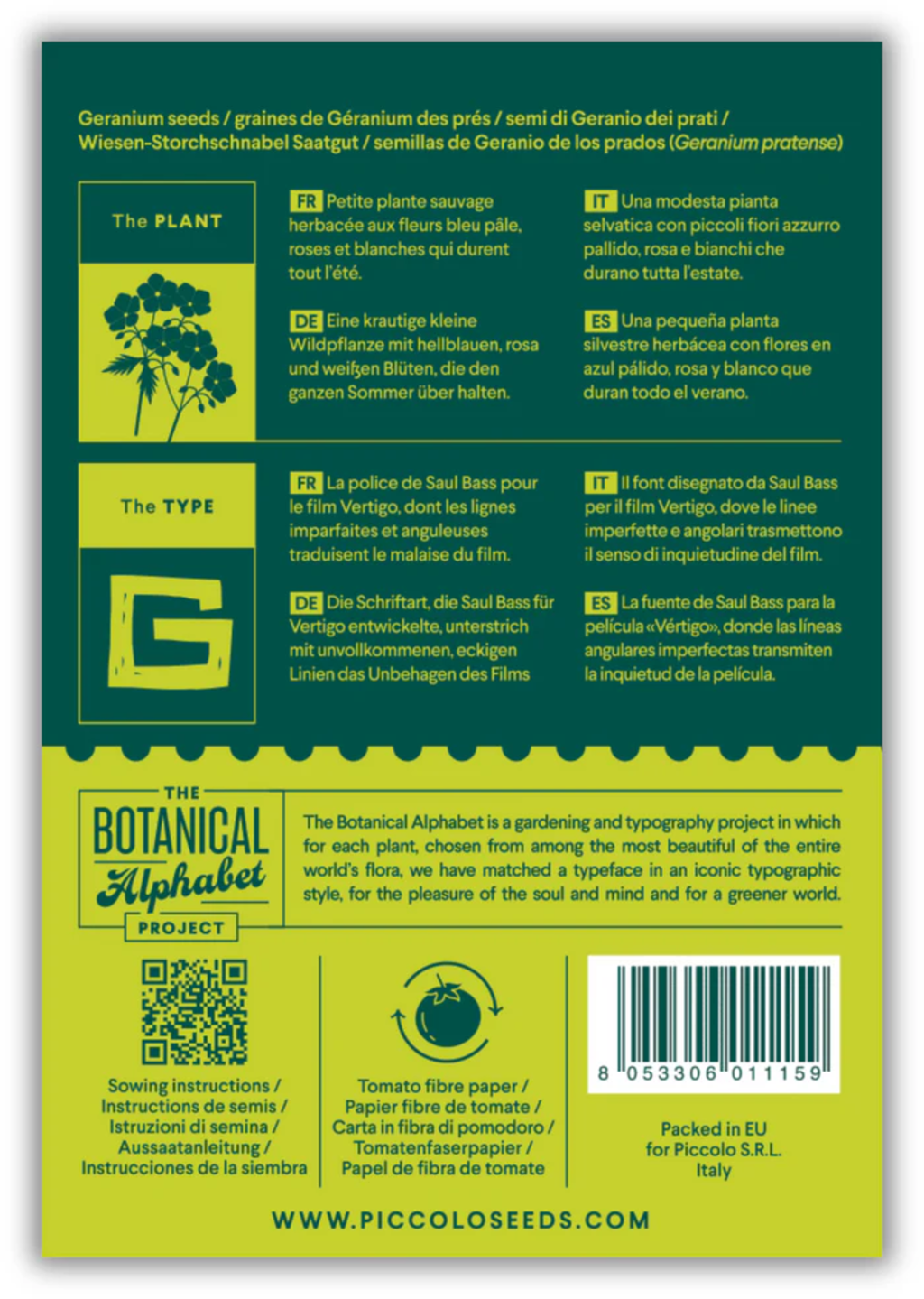 Piccolo Seeds G - Geranium - Meadow Cranesbill, 6 Seeds