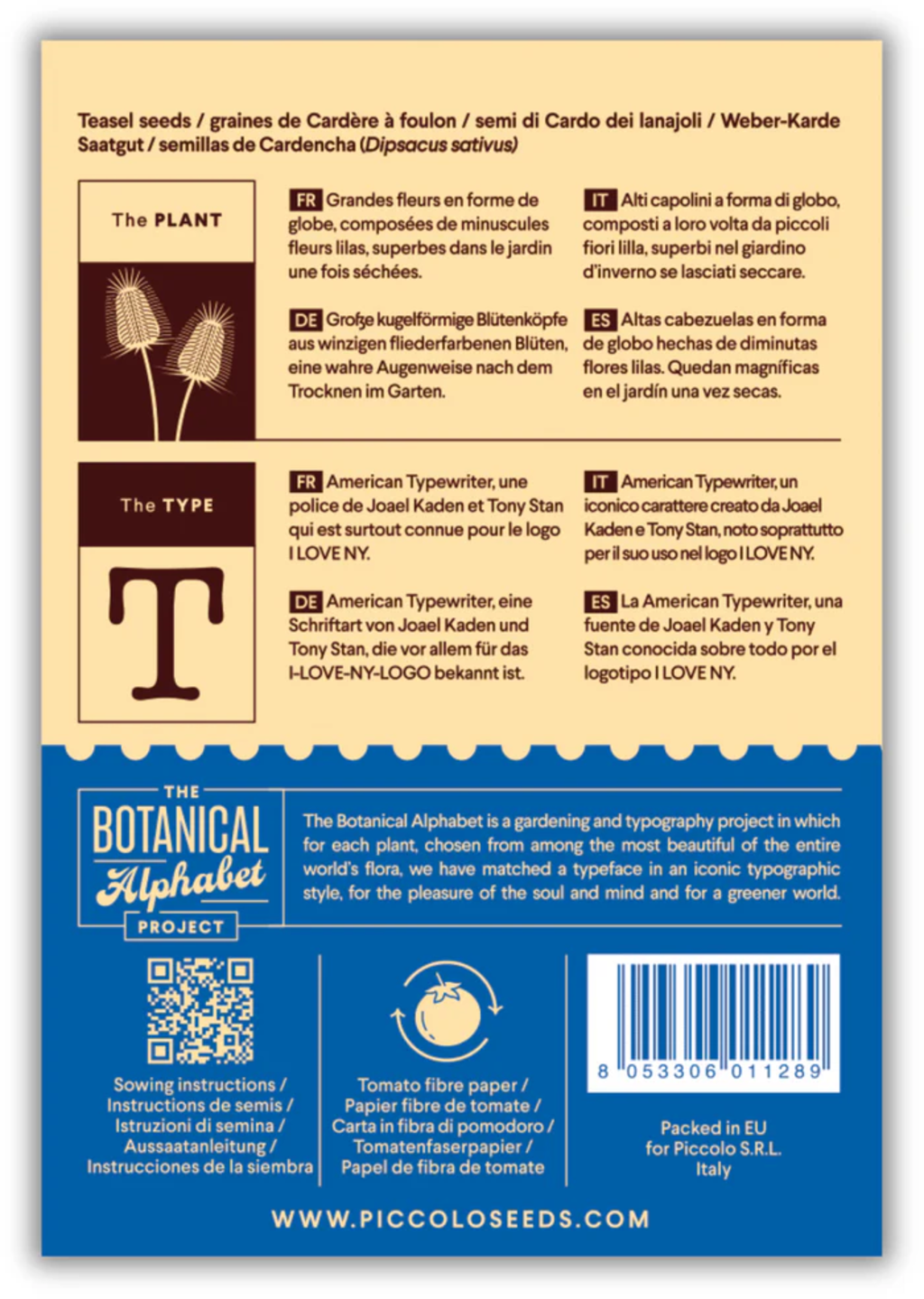 Piccolo Seeds T - Teasel - Fuller’s Teasel