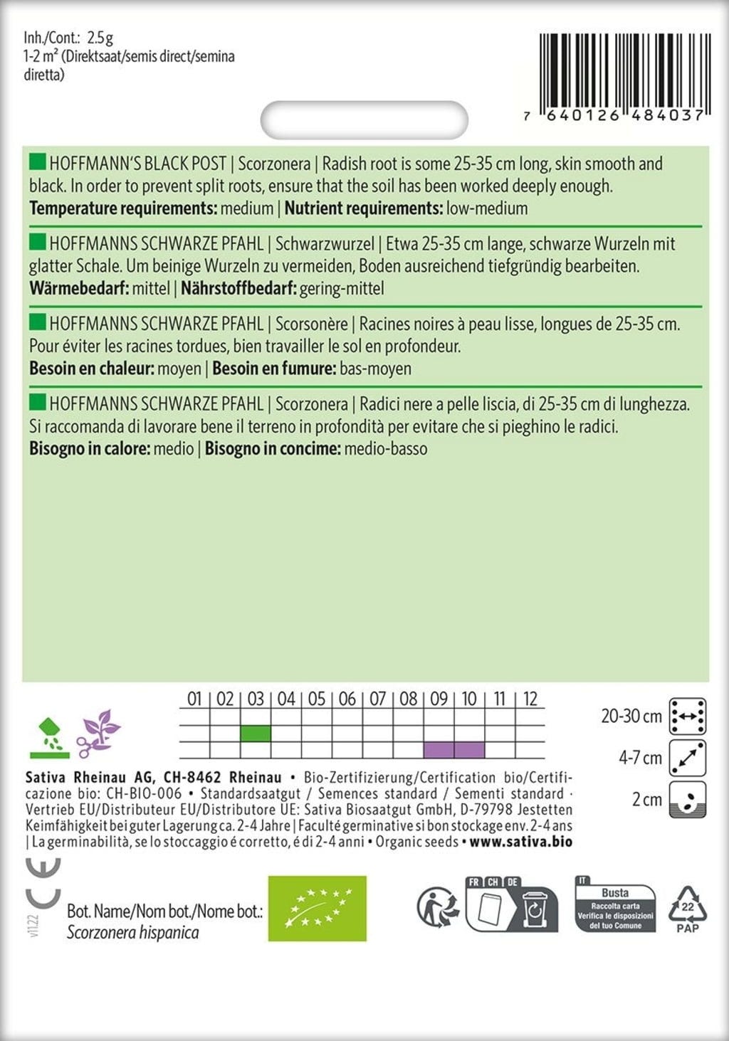 Sativa Organic Black Salsify, Hoffmanns Schwarze Pfahl
