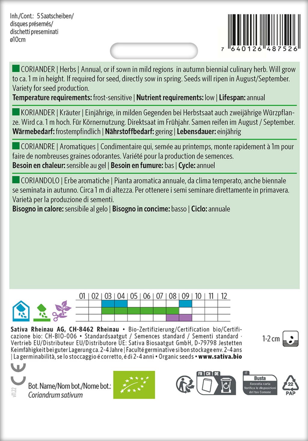 English reviews written for Sativa Organic Coriander "Seed Discs"