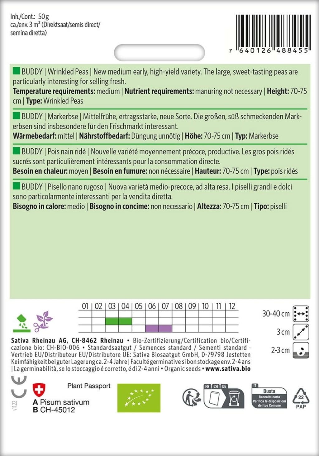 English reviews written for Sativa Organic Wrinkled Pea, Buddy