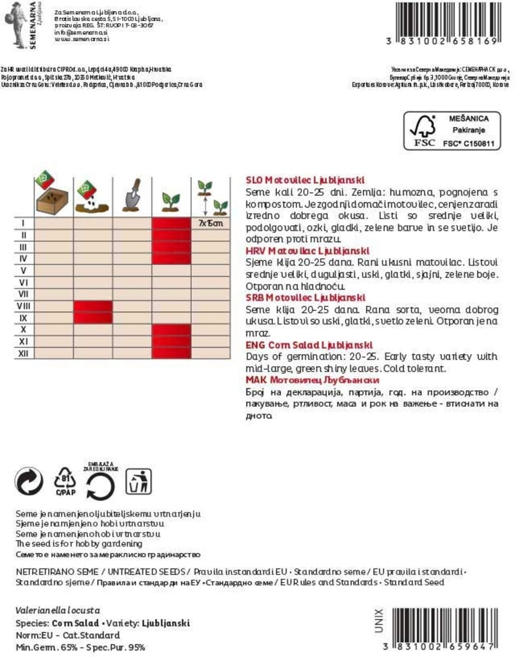 Semenarna Ljubljana Lamb's Lettuce Seeds ‘Ljubljanski’, 25 grams