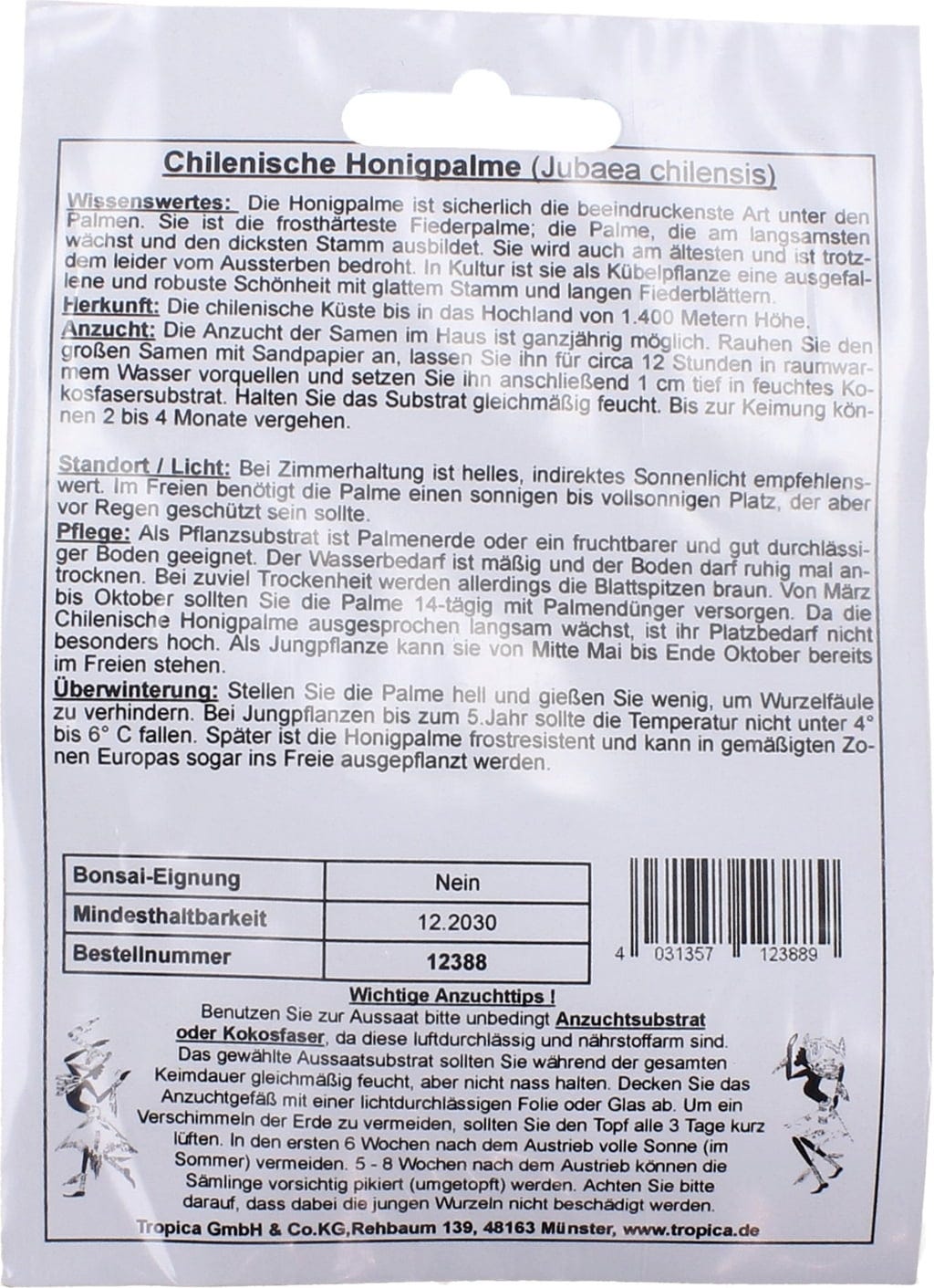 Please note: For the first five years, temperatures should not drop below 4°–6°C. Once established, however, the Chilean Wine Palm is frost-resistant in temperate European zones.