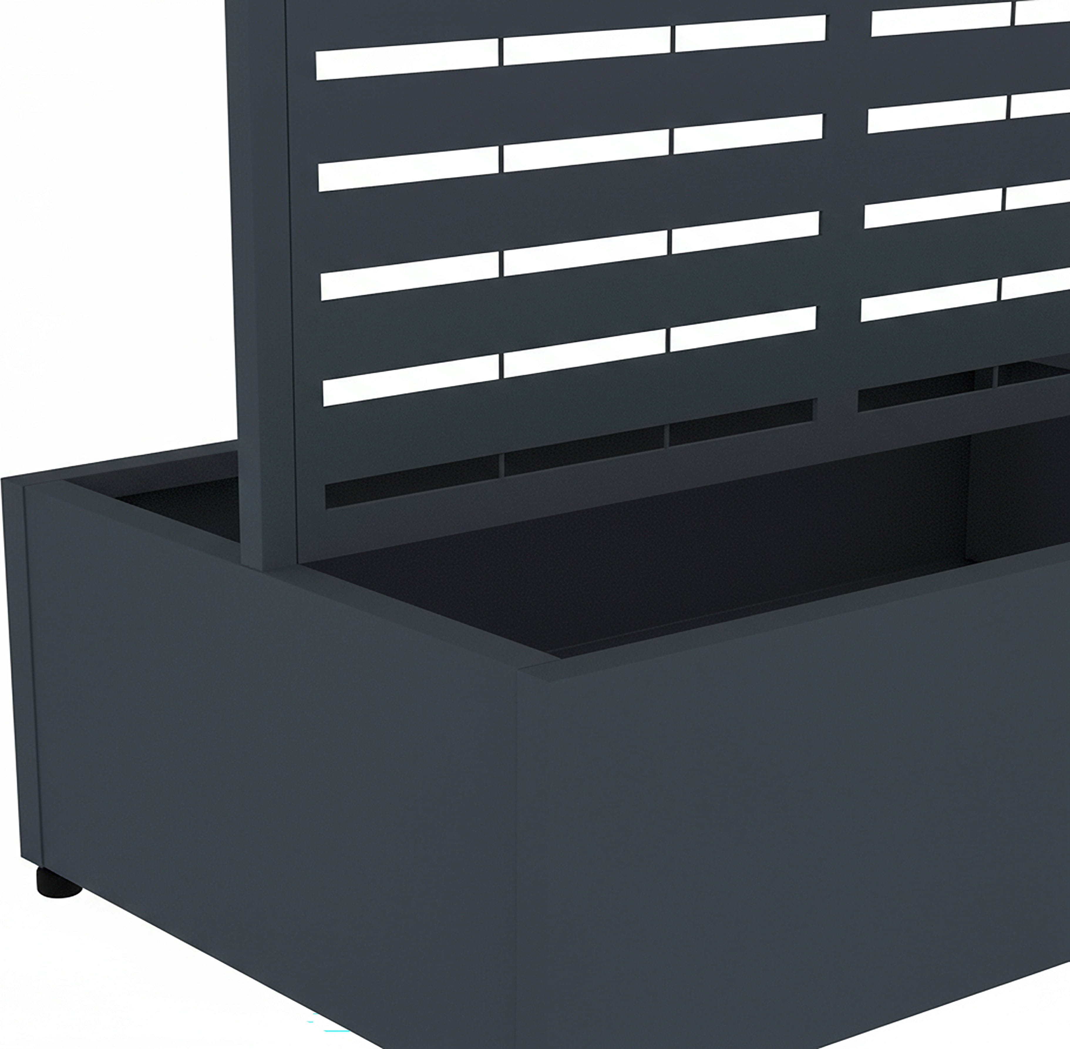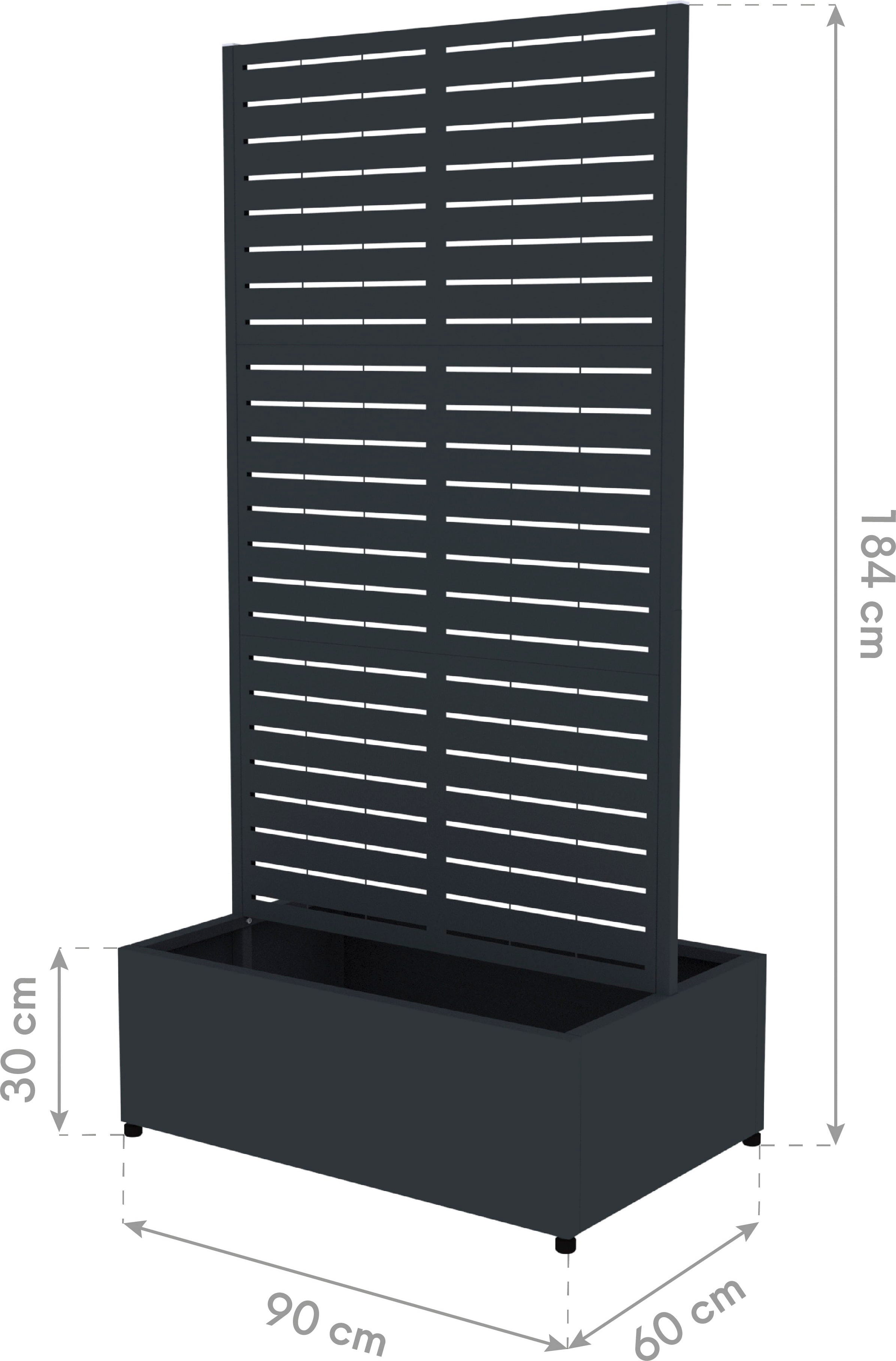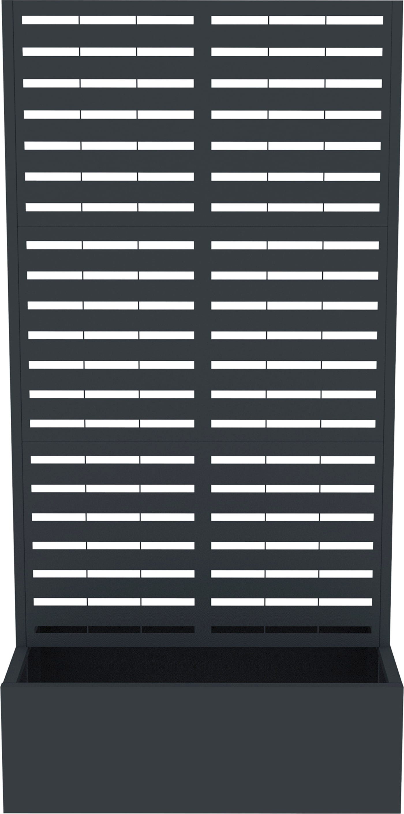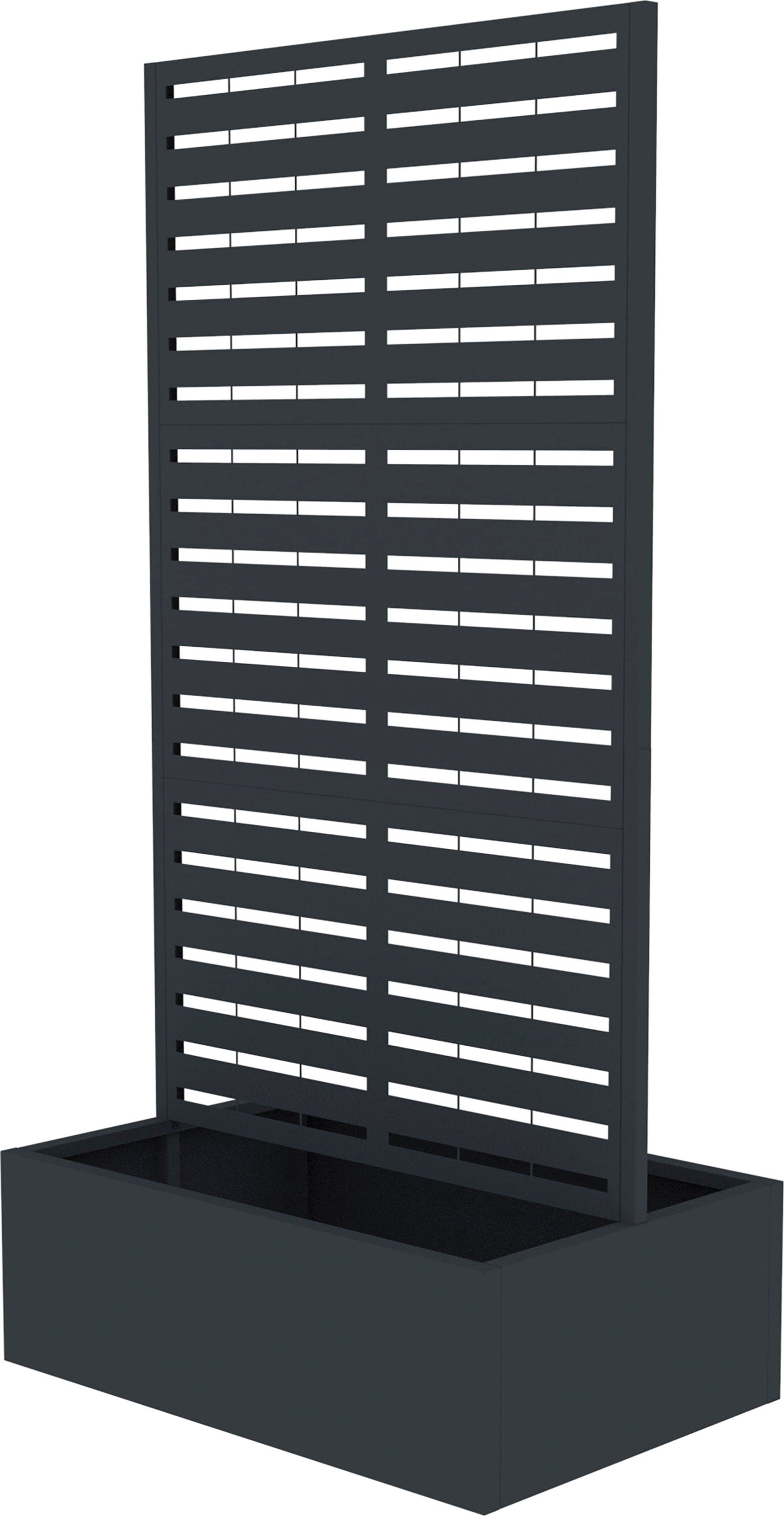 This generously sized planter with its centrally positioned trellis is ideal for planting on both sides. It can also be used as a privacy screen. Integrated drainage allows excess water to drain away and prevents waterlogging. Made of powder-coated steel, it is very robust and weather-resistant.